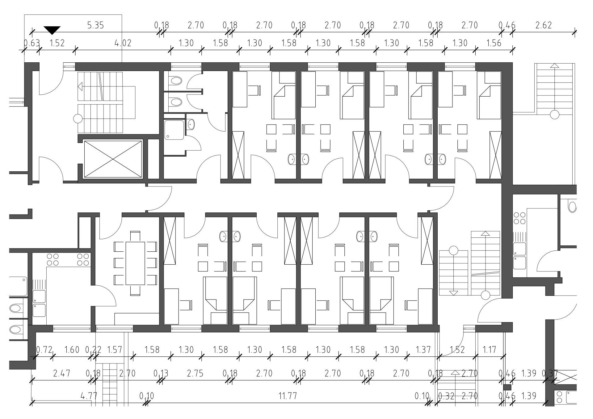 - 1,6 mm dicke Linien für Wände der baulichen (mindestens)